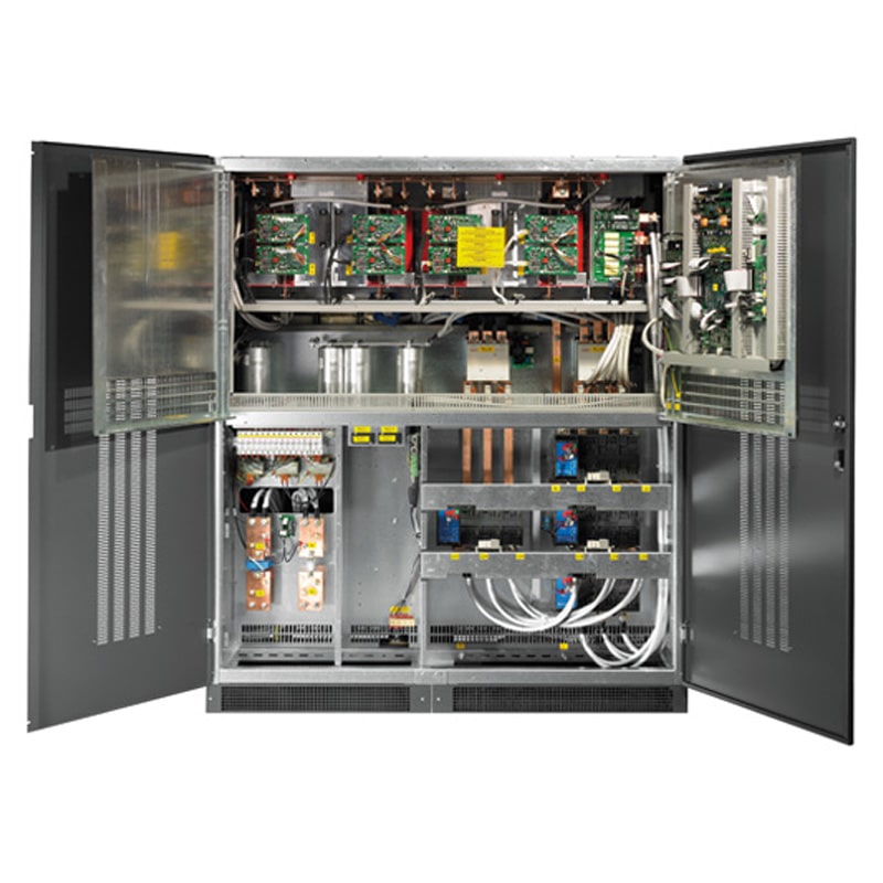 The Master HE UPS, with a power range of 100 to 800 kVA, offers an innovative solution for protecting critical systems, utilizing online double-conversion technology (VFI-SS-111) with an isolation transformer compliant with the IEC EN 62040-3 standard. This UPS achieves an efficiency of 95.5% in online mode and 99.4% in Standby On mode; these figures, despite the losses introduced by the isolation transformer, are comparable to the best transformer-less UPS systems available in the market. With minimal impact on input sources, an output power factor of 1, and output voltage distortion below 1% under linear loads, it is an ideal choice for data centers, telecommunication facilities, and heavy industries. The proprietary STEP-UP/STEP-DOWN technology reduces current ripple, extending the lifespan of external batteries and enhancing reliability. The Peak Shaving feature facilitates peak load management, minimizing energy costs. The Master HE is equipped with a delta zigzag output isolation transformer integrated directly into the inverter circuit, providing complete galvanic isolation between the inverter and connected equipment. This design enables the use of two completely separate inputs (main and bypass) from different power sources without requiring a neutral connection at the rectifier input. Additionally, the inverter transformer minimizes third harmonic effects, and the high short-circuit current capacity of the inverter (up to three times the nominal current) allows for rapid resolution of phase-to-neutral faults. The LCD display with a 240×128 pixel resolution clearly presents the device’s parameters and operating status. The placement of the transformer within the device frame and the positioning of cooling fans at the top reduce the footprint while providing greater flexibility in system configuration and installation in critical infrastructure. With an MTBF exceeding 250,000 hours and overload protection up to 200% for 7 seconds, the Master HE ensures stable and reliable performance for critical infrastructure.