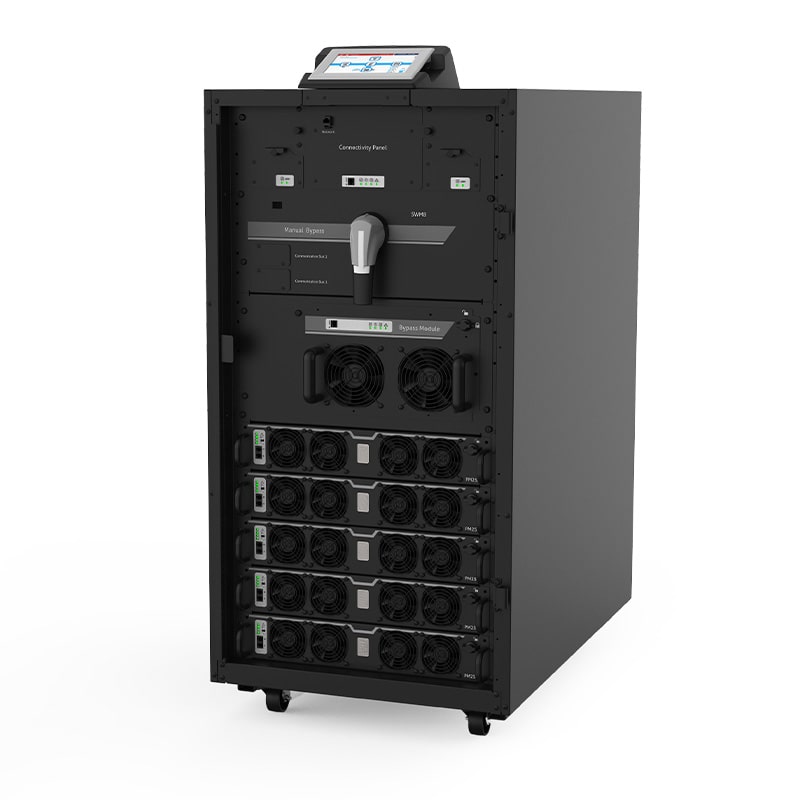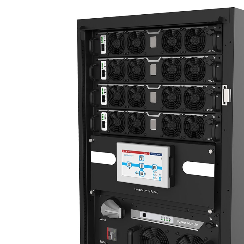 The Multi Power UPS, with a modular online topology and scalable power from 15 to 1176 kW in a three-phase to three-phase configuration, includes selectable power modules of 15, 25, and 42 kW with hot-swap capability, utilizing online double-conversion technology (VFI-SS-111) without a transformer, compliant with IEC EN 62040-3. By paralleling 28 power modules, the system's total capacity exceeds one megawatt. Its modular design allows users to easily expand capacity as load requirements increase, adding more modules at a lower cost instead of purchasing an additional UPS. With an input and output power factor of 1, input harmonic distortion below 3%, and 96.6% efficiency in online mode, this model is ideal for data centers, computer networks, and navigation systems. Various frame configurations, combining power modules, bypass, communication panel, and battery shelves, offer diverse setup options. The Auxiliary Signal Board on the rear panel facilitates connection to electrical panel switches for input, bypass, and battery control commands. The communication panel features a 7-inch touchscreen LCD display, two slots for communication equipment, two power supply units, a monitoring unit, and an RJ45 network socket. Monitoring is enabled via TCP/IP protocol by default, without requiring additional equipment. The UPS requires minimal installation space; the MPW Power Cabinet 300 PWC with seven 42 kW modules (294 kW in a 42U frame) and the MPW Combo Cabinet 130 CBC with three 42 kW modules (126 kW in a 42U frame) plus five battery units (200 units of 9 Ah batteries) with front-access design require just over half a square meter. Ultimately, the Multi Power, with its focus on scalability and minimal maintenance costs, supports sustainable infrastructure growth for dynamic applications.