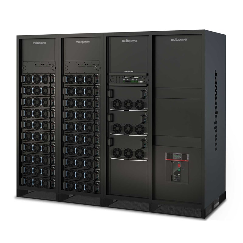 The Multi Power 2 Scalable modular UPS, the pinnacle of the Multi Power 2 family evolution, with an enormous power capacity of 1000 to 1600 kW, provides uncompromising protection for data centers and AI applications; this UPS offers exceptional scalability up to 6400 kW with 4 parallel frames. Featuring advanced 67 kW modules, it delivers an exceptional 98.1% efficiency in online mode and an output power factor of 1, making it an ideal choice for data centers. The use of Silicon Carbide (SiC) technology in the power modules reduces energy and heat losses, minimizing the need for energy-intensive cooling systems and offering a reliable and sustainable solution. The Smart Modular Architecture (SMA) in this UPS automatically monitors module health and synchronizes the firmware of connected modules; with two independent communication buses and redundancy, it ensures operational continuity even in the event of module failures. The hot-swap capability of the modules enables seamless power expansion, while the efficiency control system optimizes efficiency and redundancy by intelligently activating the required number of modules. Its wide input voltage acceptance range (up to 40% below nominal voltage at half load) keeps the rectifier active, preventing battery switching; the system maintains operation without battery use even during a single-phase outage (up to 66% load) or a two-phase outage (up to 33% load). The Power Walk-in feature in the rectifier gradually ramps up the input current, preventing sudden stress on input sources and ensuring more stable performance. The variable battery count (30 to 44 units) highlights the high flexibility of the Multi Power 2 Scalable; with 30 batteries, 75% of the capacity is usable. Configurations such as PC0 (without switches), PCS (with input/output/bypass/manual bypass switch sets), CT0 (space-optimized with backfeed protection), and CT2 (with main switches and backfeed protection) enhance installation flexibility. The high-resolution 7-inch touchscreen display graphically presents the UPS parameters and operating status.